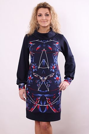 Платье из плотного трикотажа,спинка однатонная,30% вискоза,65% п/э,5% эластан