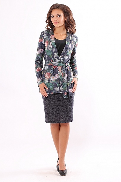 Комплект из качественного меланжевого трикотажа состоит из жакета и юбки на резинке пояс в комплекте