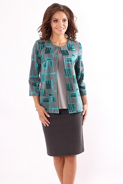 Комплект состоит из жакета и юбки жакет из плотного жаккардового трикотажа застегивающийся на один крючок юбка из плотного трикотажа