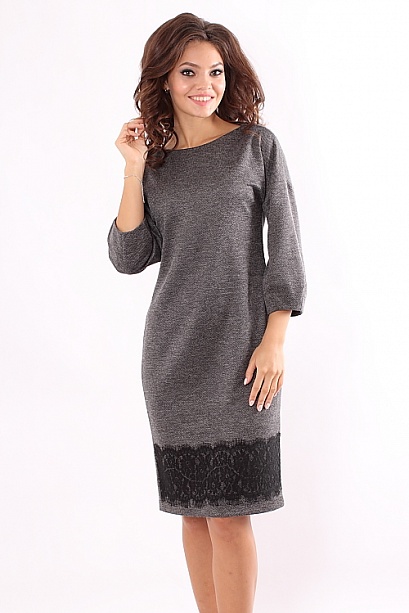 Платье из плотного меланжевого трикотажа украшено кружевом