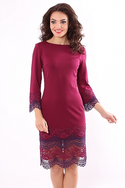 Платье из плотного трикотажа по низу украшено кружевом
