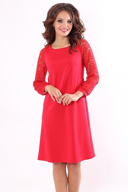 Нарядное платье А-силуэта из плотного трикотажа с кружевными рукавами
