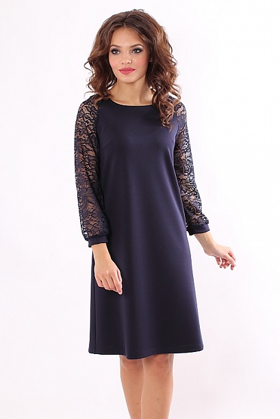 Нарядное платье А-силуэта из плотного трикотажа с кружевными рукавами