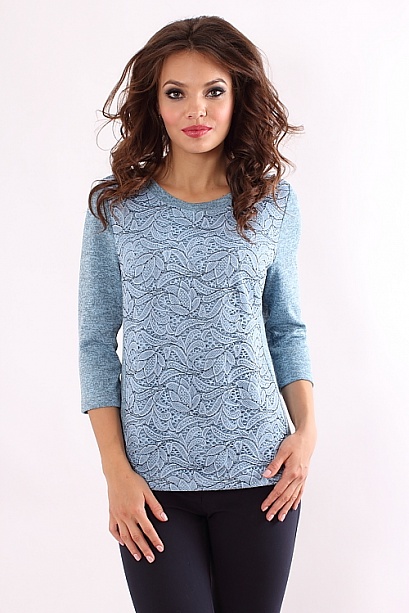Блузка из меланжевого трикотажа декорировано кружевом