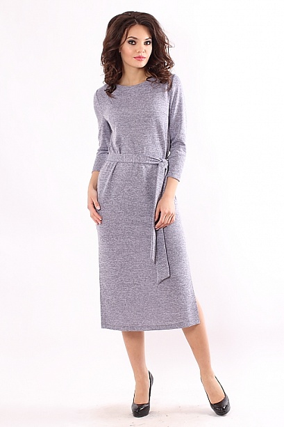 Платье из меланжевого трикотажа длина миди пояс в комплекте