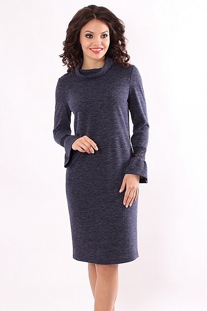 Платье из меланжевого трикотажа рукава украшены кружевом