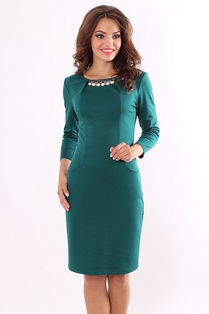 Платье из плотного трикотажа с украшением
