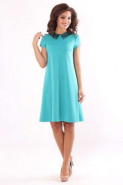 Трикотажное платье силуэт трапеция с кружевным воротничком