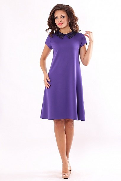 Трикотажное платье силуэт трапеция с кружевным воротничком