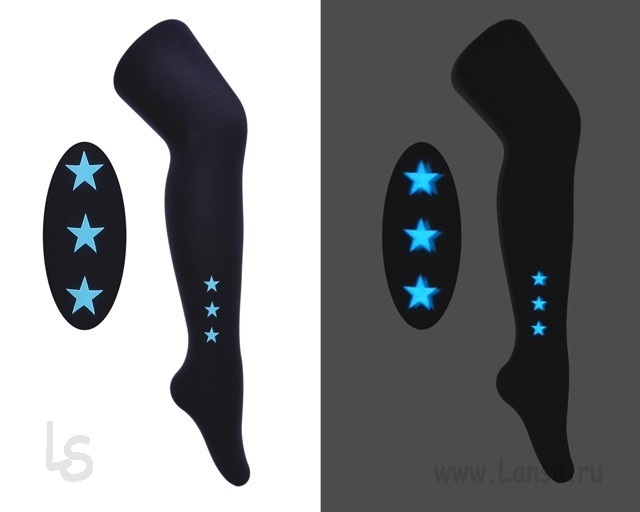 Колготки детские эластичные 40 den (синие, с неоновыми вставками звезды) для детей от 4-х до 14-16-ти лет.