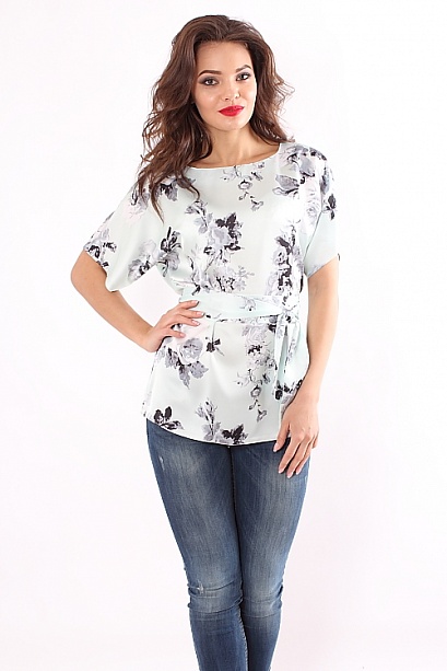 Атласная блузка пояс в комплекте