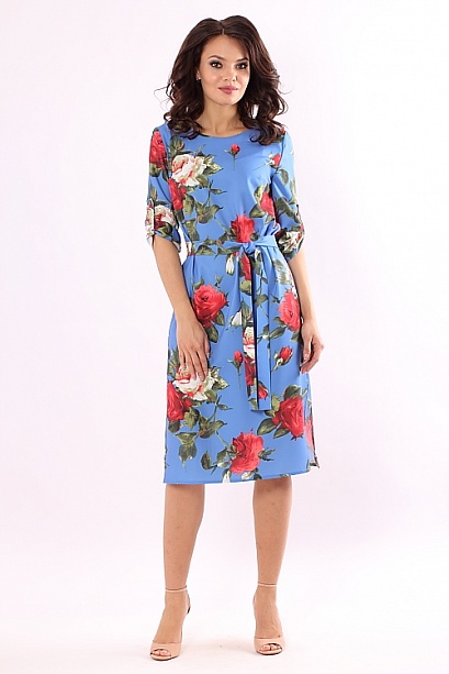 Платье из текстильного полотна прямого силуэта длина миди пояс в комплекте