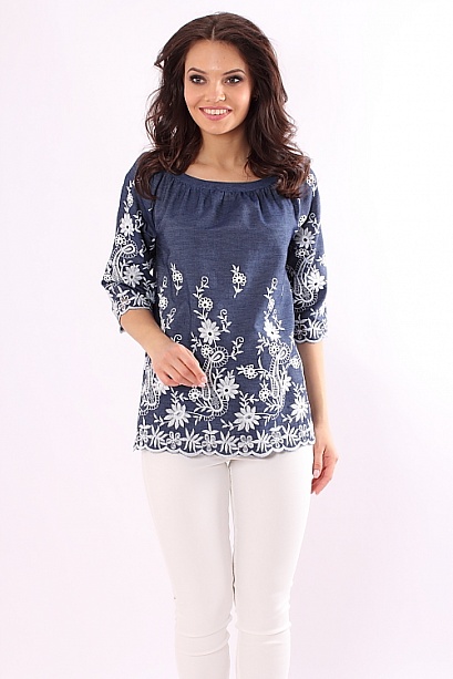 Блузка из джинсы с вышивкой,принт купонный