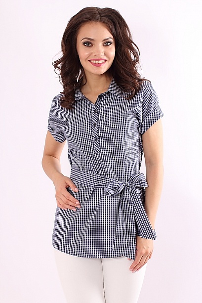 Блузка-рубашка с цельнокроенными рукавами,с поясом в комплекте