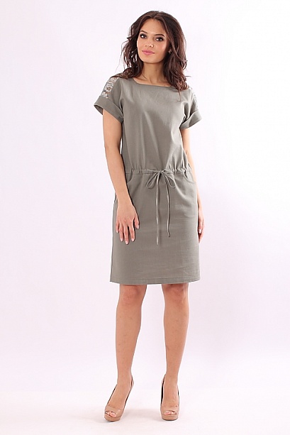 Хлопковое платье с кружевными вставками с кулиской и карманами